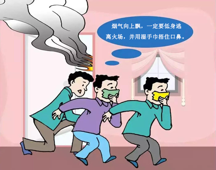 4.只有逃生路線被切斷和受阻時,我們才應(yīng)該躲進(jìn)房間,同時用濕毛巾堵住門縫,打開窗戶大聲呼救;如果是在夜晚發(fā)生火災(zāi)的話,則可向外打手電,發(fā)出求救信號。